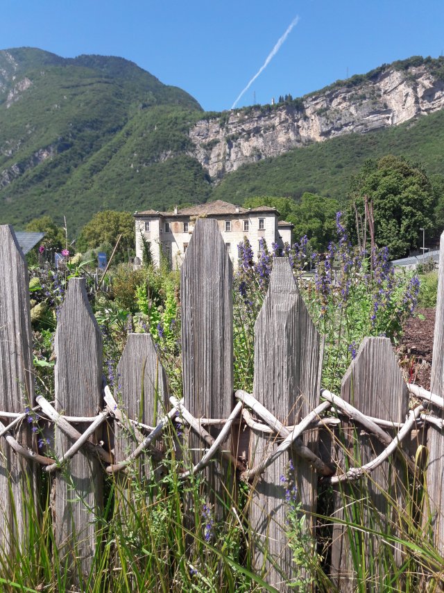 Der Mustergarten in Trient, MuSe, mit einem traditionellen Gartenzaun aus Lärchenholz.