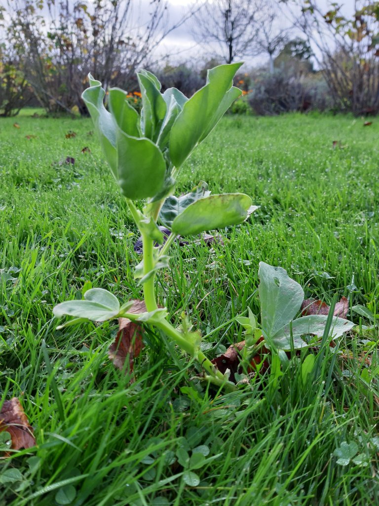 Eine schöne Überraschung: die Puffbohnen haben sich selber ausgesät. In allen Beeten finden wir kleine Pflänzchen, sogar au6der Wiese fühlt sich das Böhnchen wohl. Ist es eine Laune der Natur?, oder liegt es am milden Herbst? Im nächsten Frühjahr wissen wir, ob die Dicke Bohne ein Bereicherung unserer wilden Küche geworden ist.