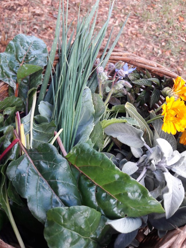 Frischegruß mit Salbei, Pfefferminze und Calendula.